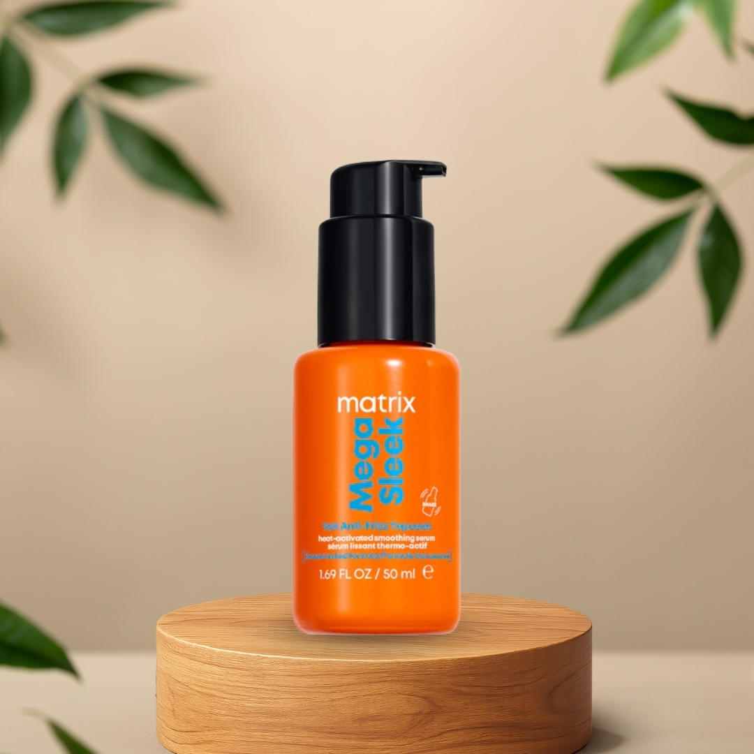 Le Sérum Lissant Thermo-Actif Mega Sleek de Matrix offre 96 heures de protection anti-frizz même par forte humidité. Cette formule révolutionnaire s’active à la chaleur pour créer un bouclier invisible qui repousse l’humidité et maintient le lissage parfait. Enrichi en huile de karité, il nourrit, fait briller et protège jusqu’à 230°C. Les cheveux restent lisses, soyeux et disciplinés pendant 4 jours complets. S’applique sur cheveux humides avant brushing ou sur cheveux secs en finition. La solution professionnelle ultime contre les frisottis rebelles.